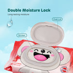 Our wet wipes, in strawberry, lemon, and lavender scents, are hypoallergenic and free from harmful chemicals. They are larger and thicker with aloe vera extract for gentle care, and feature dual embossing for long-lasting hydration.