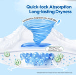 Quick-channeling layer rapidly directs liquid into absorption core, ensuring fast absorption to keep your baby’s skin dry and significantly reduce the risk of diaper rash.