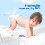 Exclusive MicroAiry Film™, designed with billions of ultra-fine micro-pores. This breathable PE film allows air to flow freely while preventing water from passing through, increasing breathability by 50%.