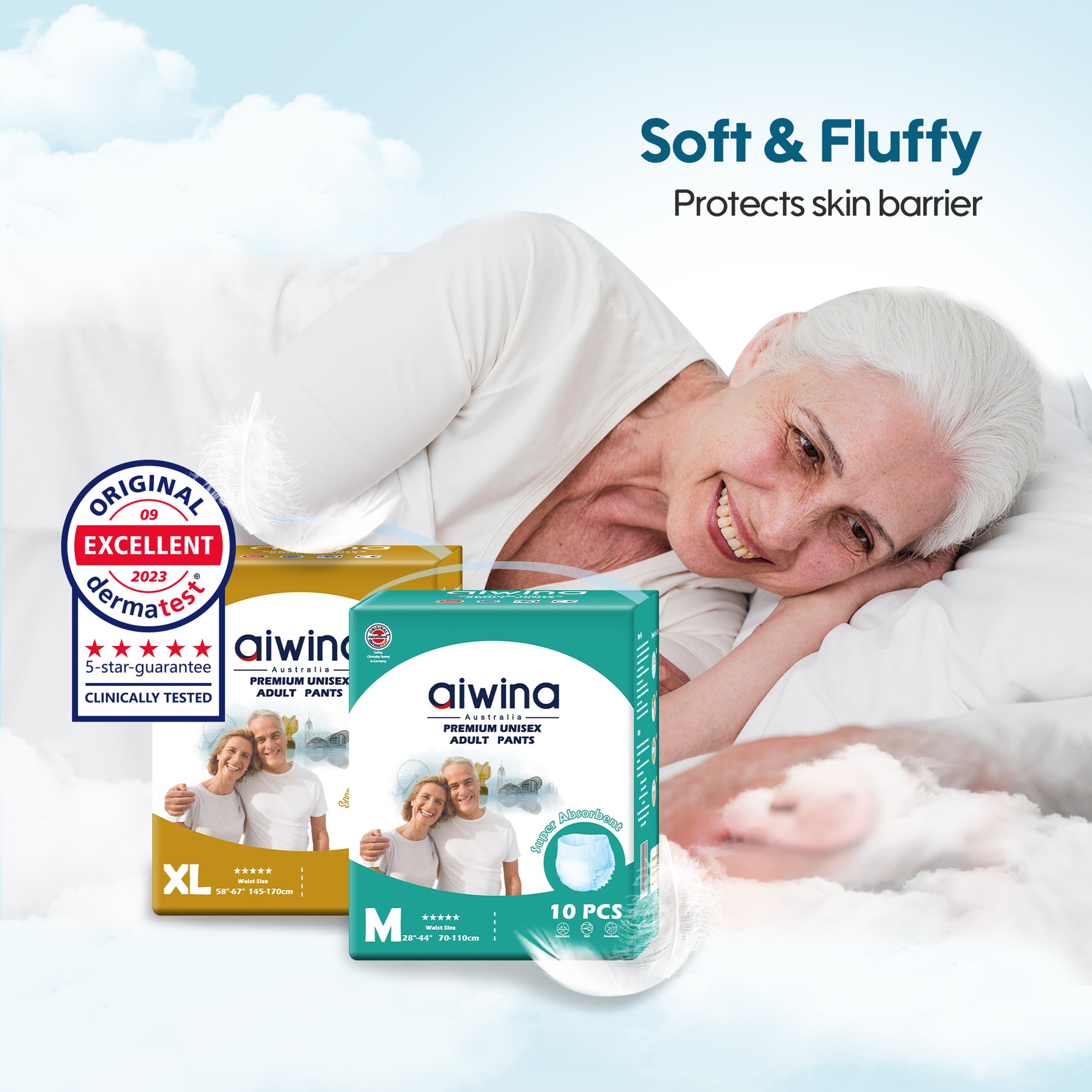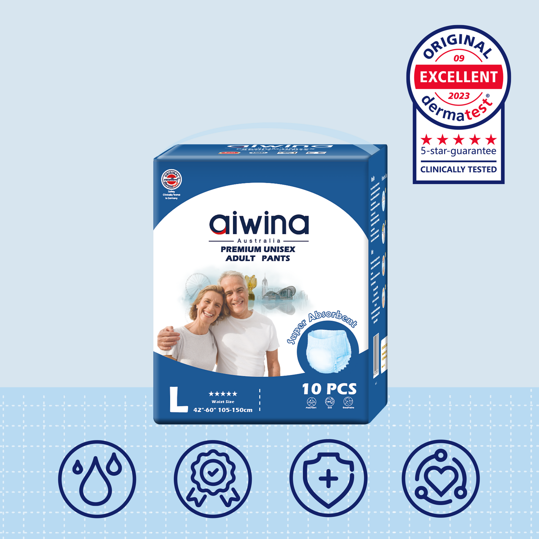 Aiwina diapers have been clinically tested and awarded an "Excellent" rating by the German Dermatest institution, which means that our products have reached the world's top level of safety and quality certification. We hope to bring more respect, convenience, and comfort to the adult population in need of special care through high-quality products.