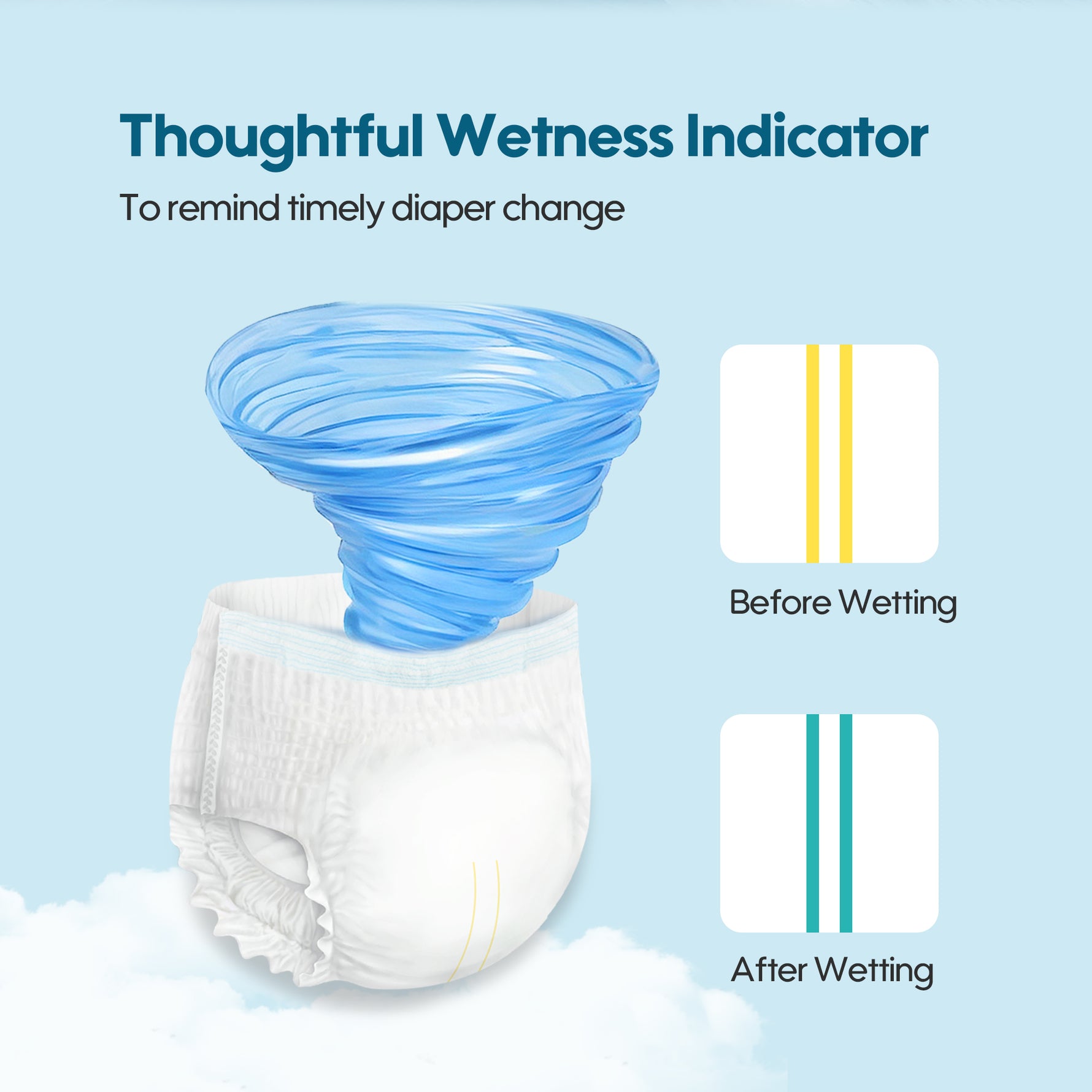 6. Wetness indicator to remind changing timely.