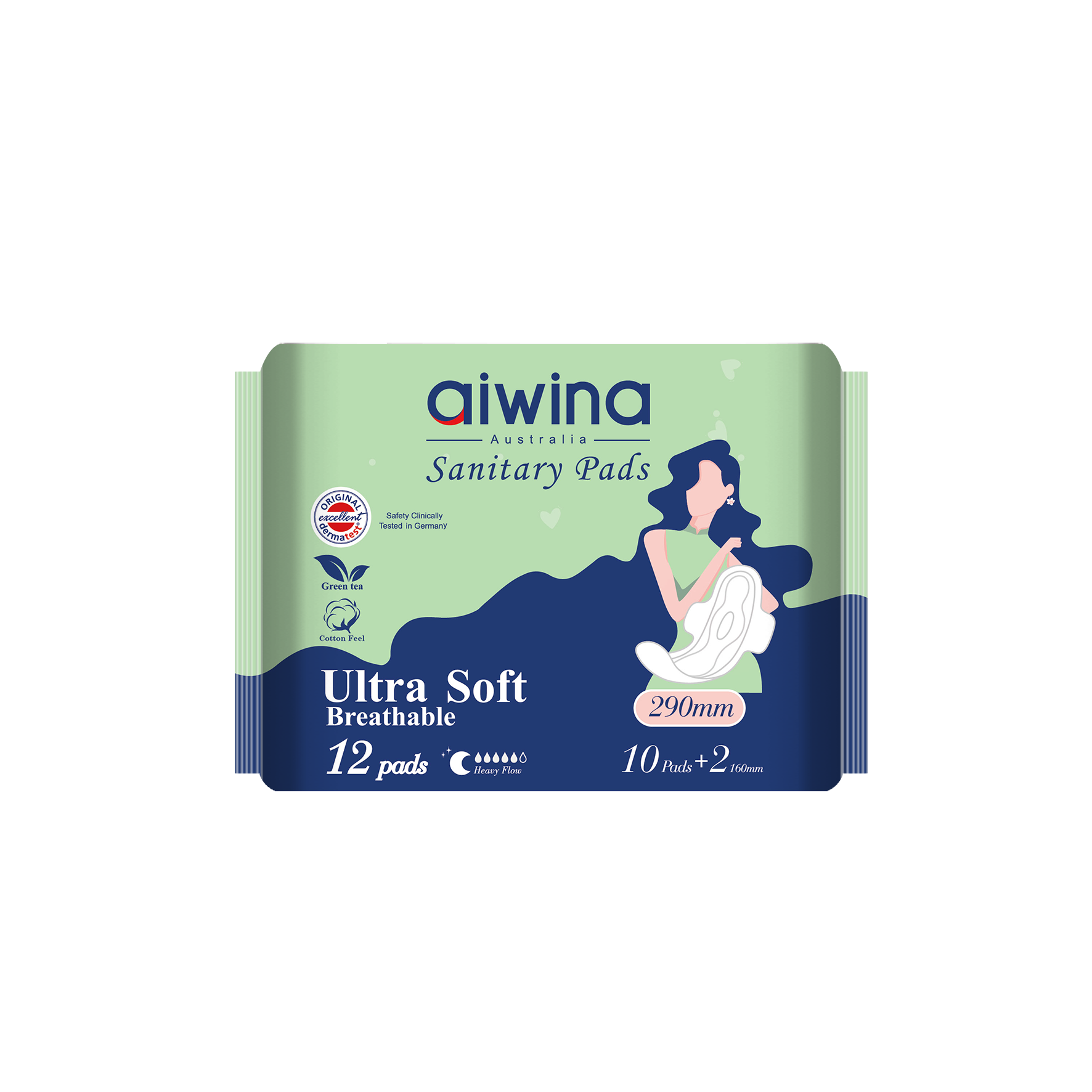 Unit price perAiwina Comfy Ultra Soft Sanitary Napkin 10+2 Pads(Green)combo with 290 mm +160 panty liner,perfect for the last days of period.