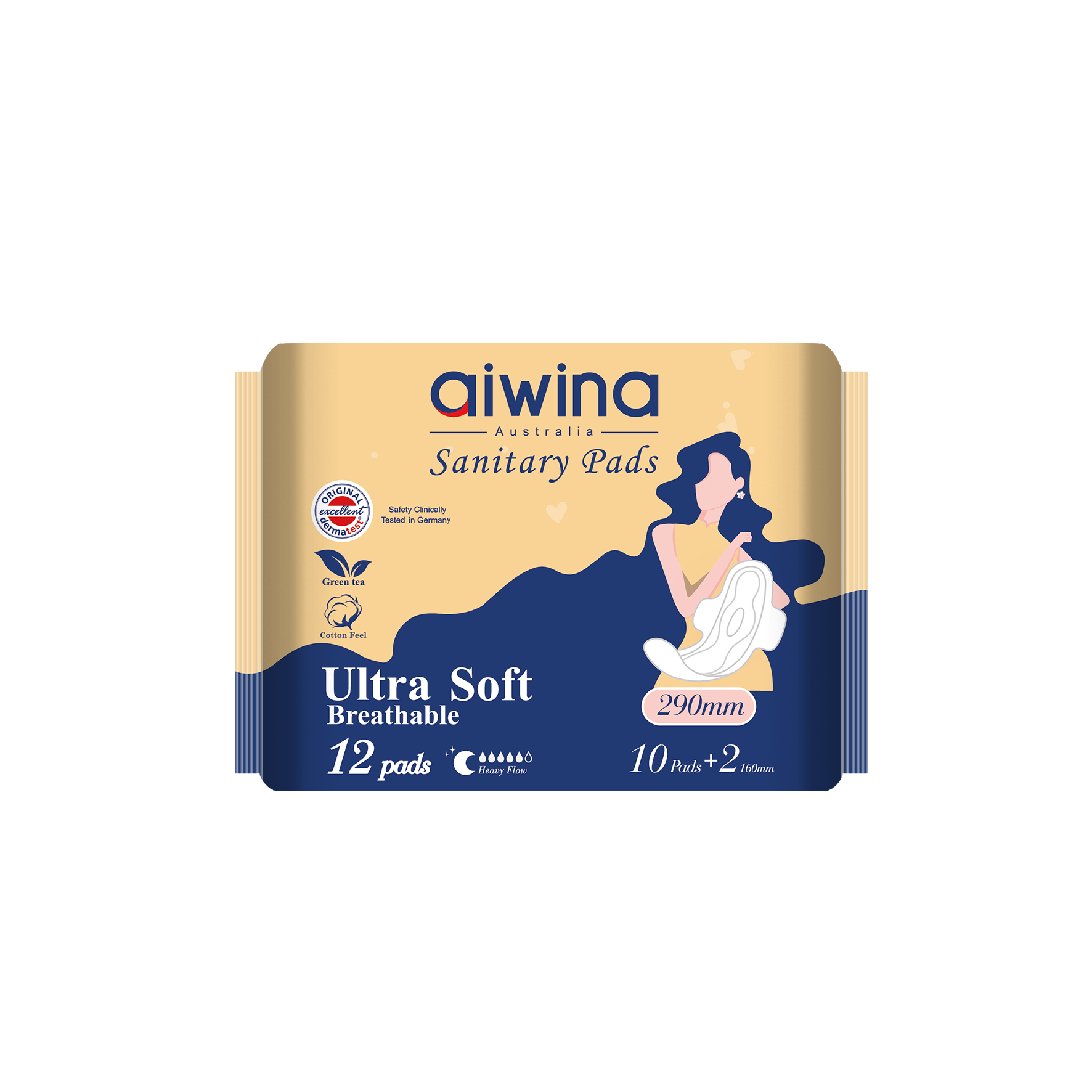 Aiwina Comfy Ultra Soft Sanitary Napkin 10+2 Pads(Yellow)combo with 290 mm +160 panty liner,perfect for the last days of period.