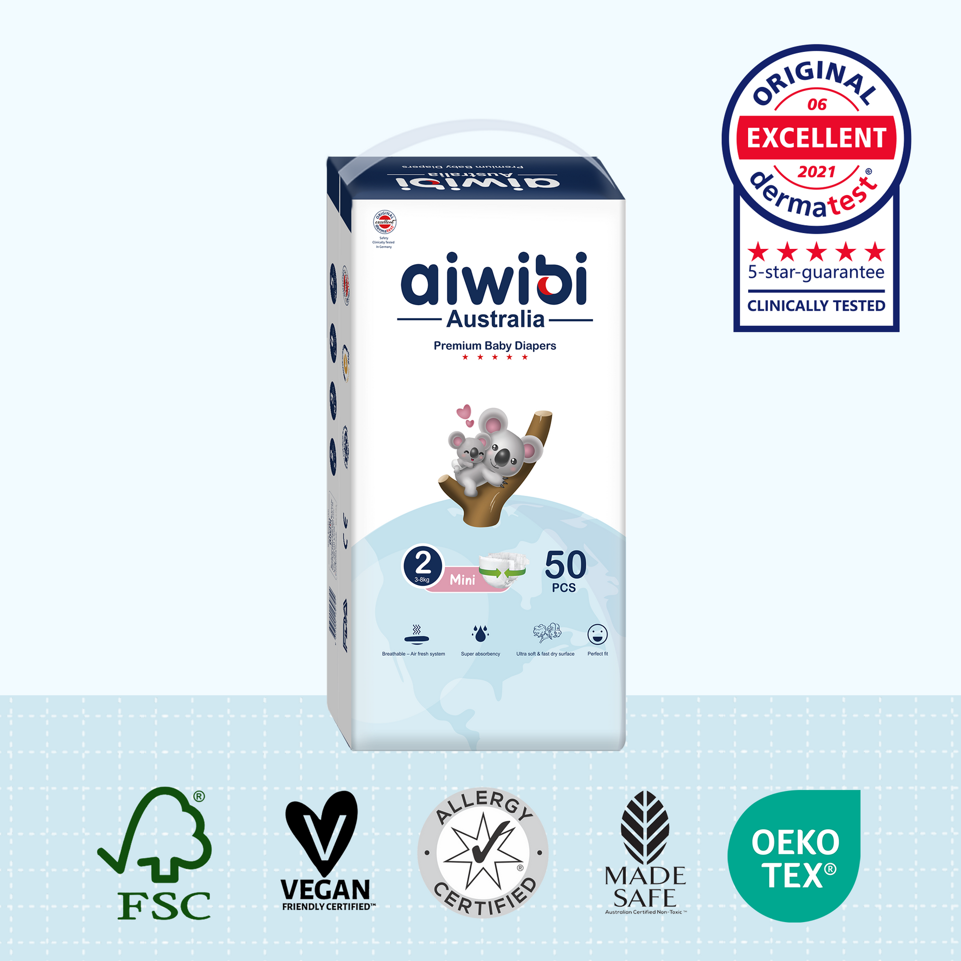 - Aiwibi diapers are certified by the German Dermatological Institute Dermatest, meaning they are gentle on your baby's skin. We don't add any fragrances, extracts, dyes, or other chemical substances to ensure the diapers are odorless and hypoallergenic.
